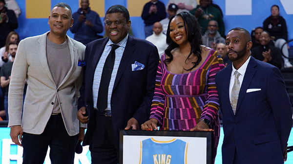LIU honorary alumnus ’10 Bernard King, New York Knicks legend and 2013 Naismith Hall of Fame inductee, was honored during New York Knicks Night as the men’s basketball team defeated Le Moyne 83–61. The victory marked the team’s 13th win of the season, the most in the NEC, keeping the Sharks in first place.