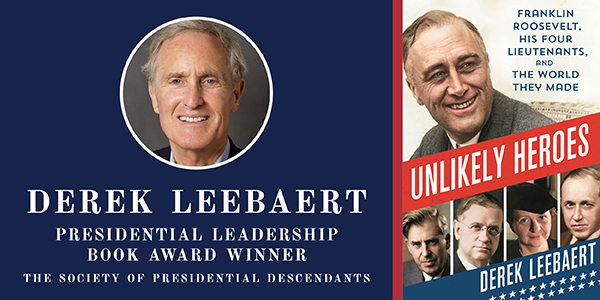 The Society of Presidential Descendants, in partnership with the Long Island University Roosevelt School, conferred Derek Leebaert with the 2025 Biennial Presidential Leadership Book Award for Unlikely Heroes: Franklin Roosevelt, His Four Lieutenants, and the World They Made. Leebaert’s bold reinterpretation of Franklin D. Roosevelt’s presidency examines the lives of four extraordinary lieutenants—Harry Hopkins, Harold Ickes, Frances Perkins, and Henry Wallace—who helped steer the United States through the Great Depression and World War II.