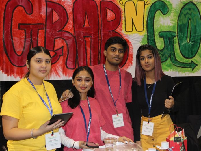 Tiffany Callejas, a senior at John Adams High School, explained how Grab’n’Go, the name of her firm, operates. “Everybody likes food. Who doesn’t?” she said with a laugh. “We took into consideration the students who come late to school. You can pre-order your favorite snacks and you don’t have to wait.”