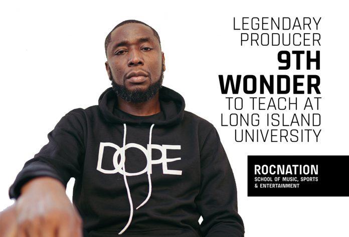 Brooklyn, New York (May 24, 2021) – Long Island University announced today that super producer 9th Wonder has joined the faculty of the Roc Nation School of Music, Sports & Entertainment as a visiting professor and artist in residence, teaching courses in hip-hop history and the making of an album. He joins award-winning soprano saxophonist Sam Newsome, and renowned baritone vocalist Colin Levin, on the growing roster of exceptional artists who will provide hands-on instruction to students of the Roc Nation School.